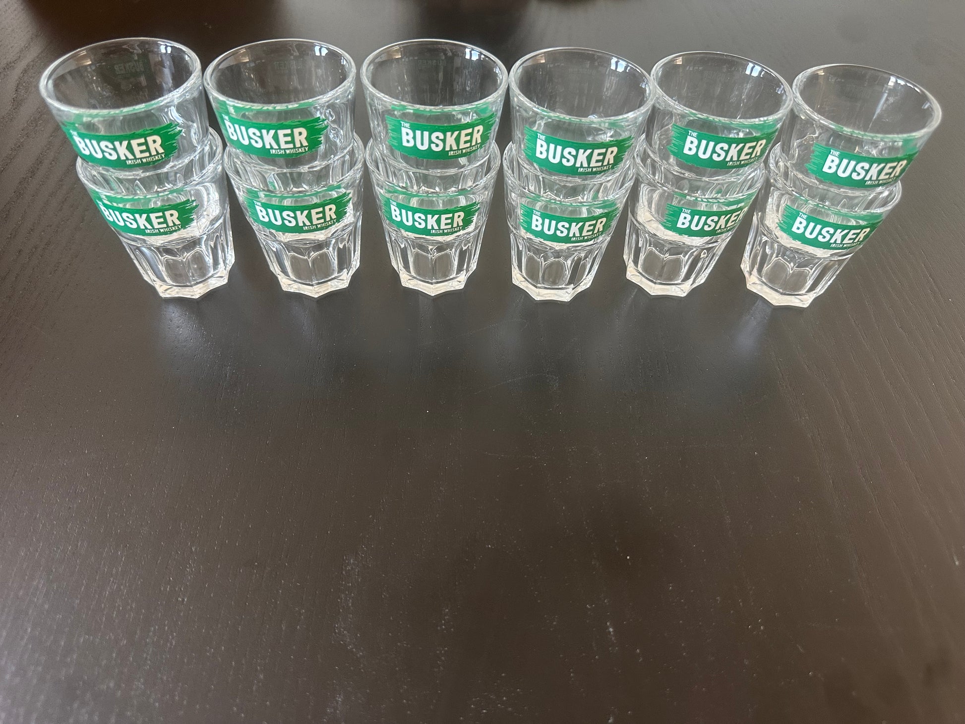 12 X Busker Irish Whiskey Glass Shot Glasses