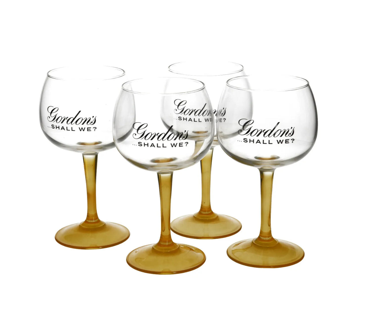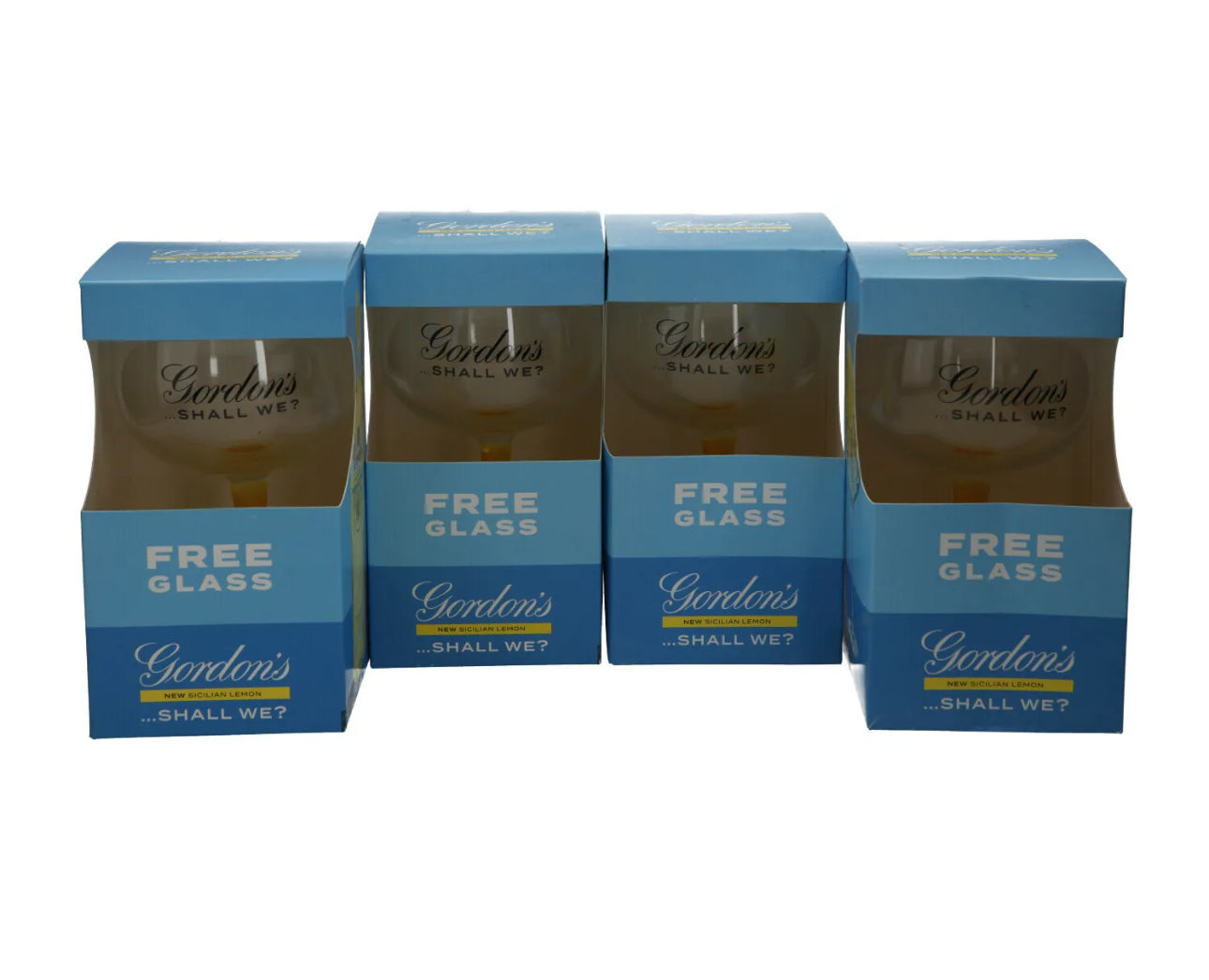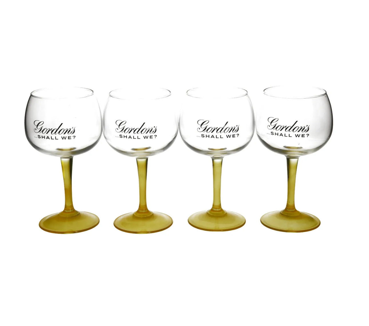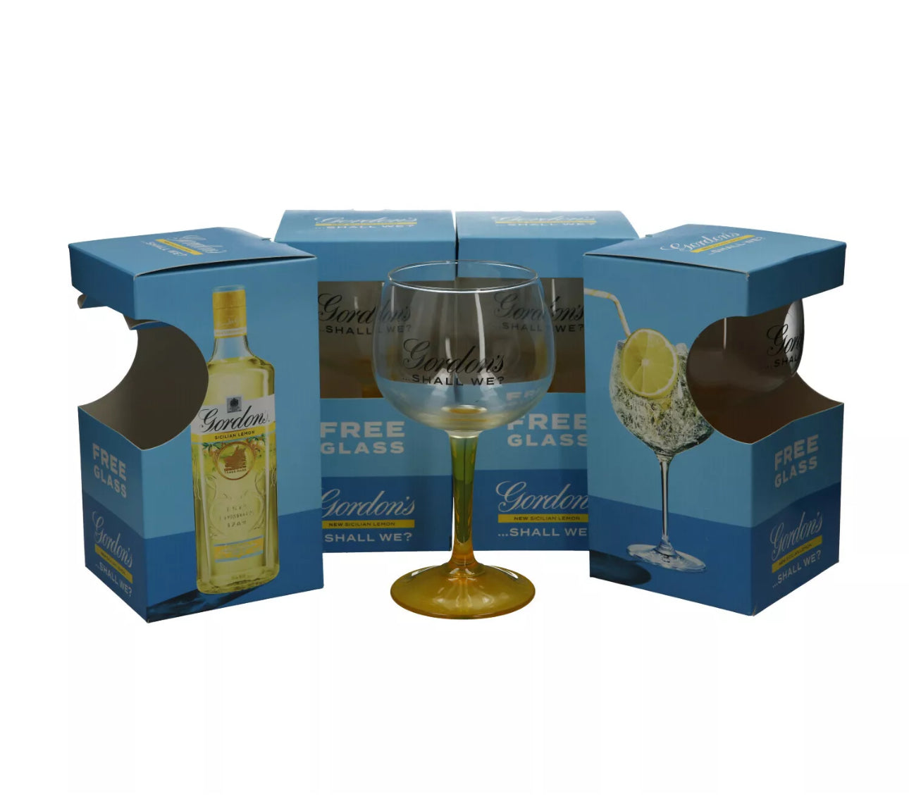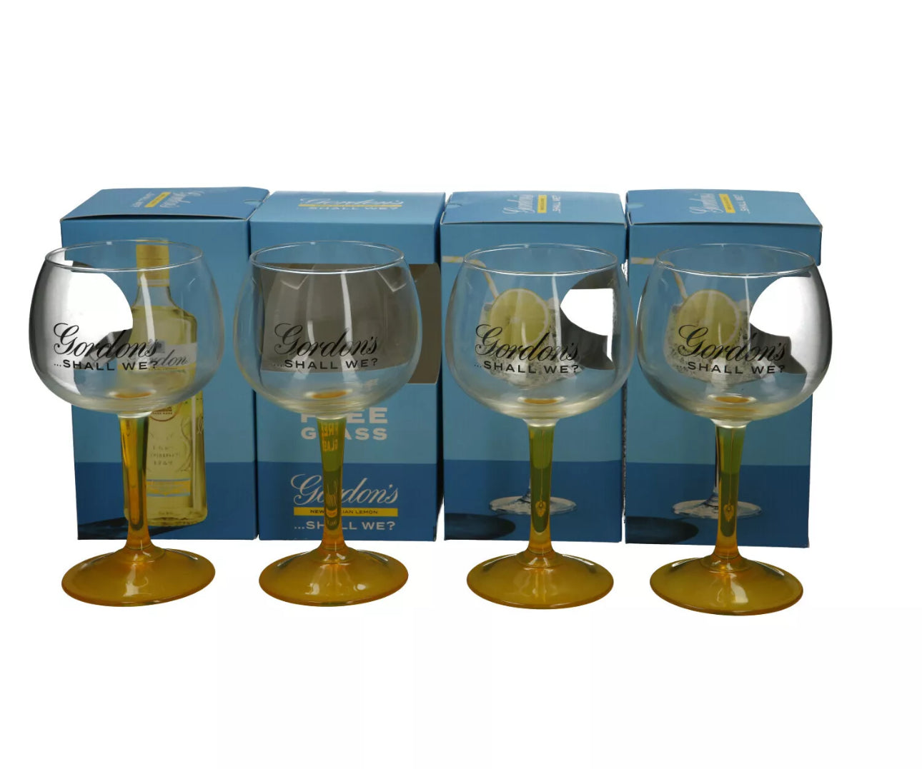 4 x Gordon's Gin Lemon Balloon Glass Yellow Stem Goblet Boxed New Xmas Gift