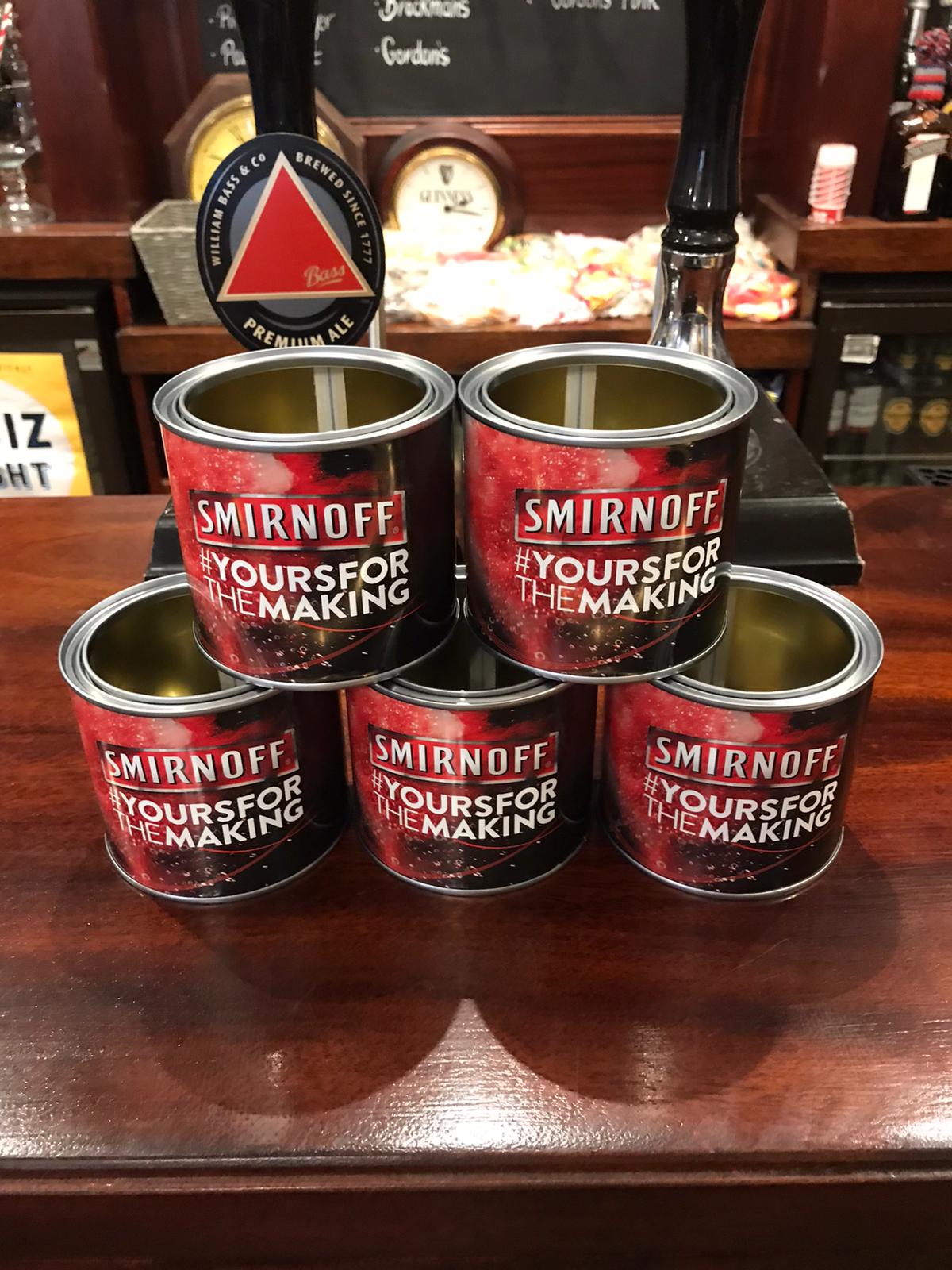 5 X Smirnoff Paint Tins Cocktail Cups