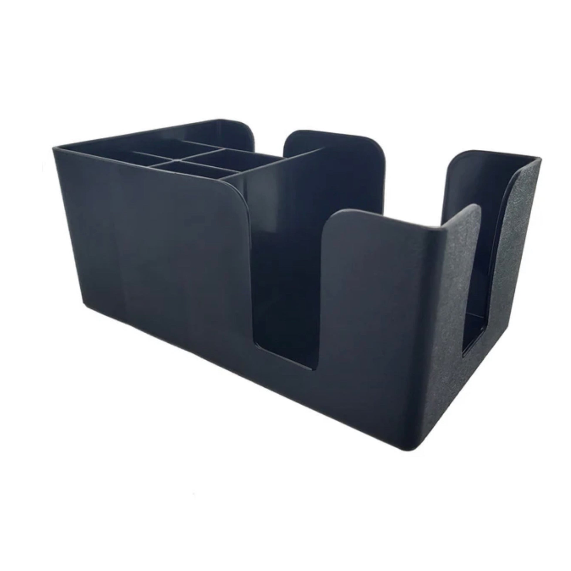Elevate the organization and aesthetics of your bar with the Plastic Bar Caddy, a perfect blend of modern styling and functionality. This classic bar caddy is designed to add a touch of sophistication to busy bars, keeping essential accessories neatly organized on your bar top. With dedicated spaces for cocktail napkins, straws, stirrers, and other consumables, this caddy ensures everything is within easy reach.