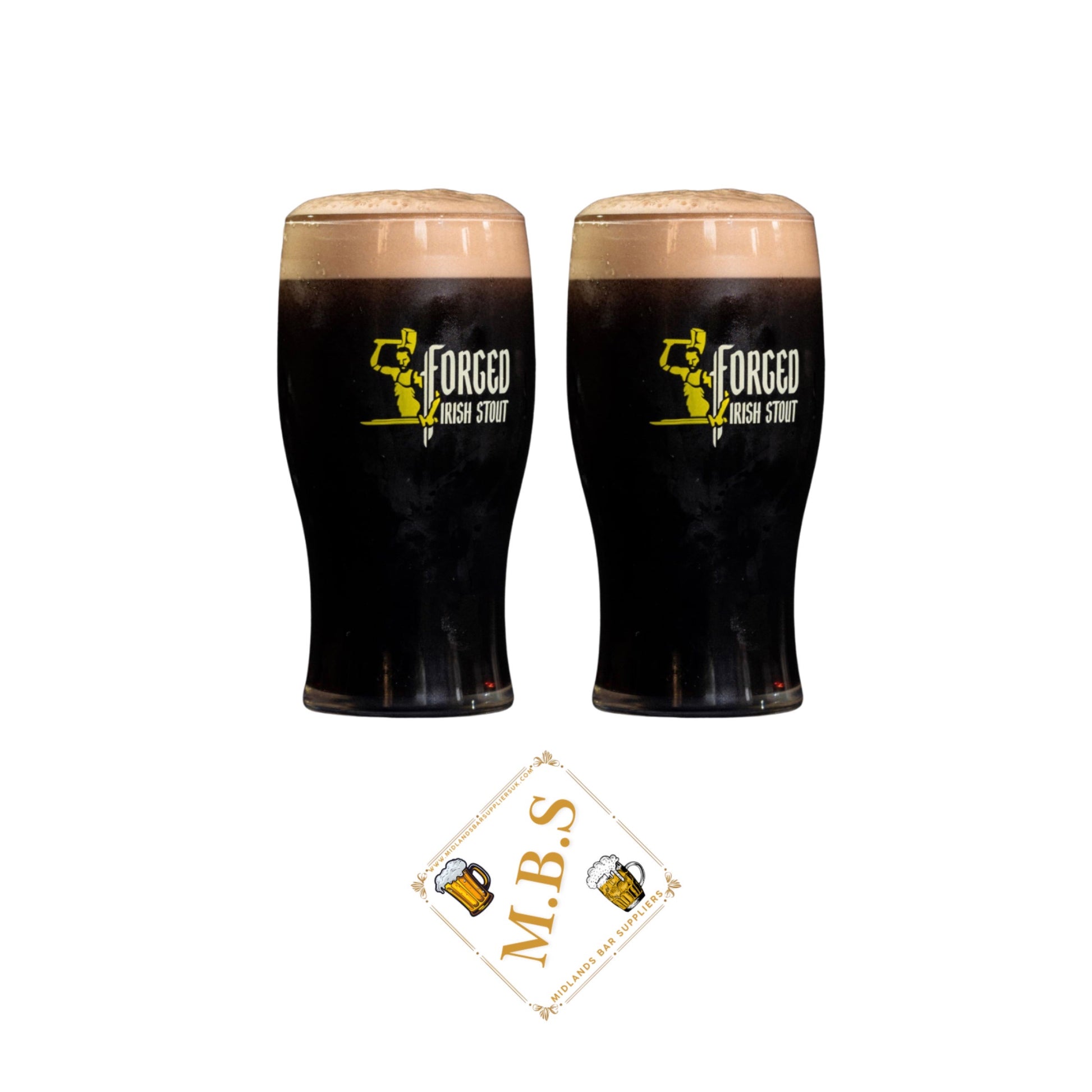 Elevate your stout-drinking experience with this premium set of two Forged Irish Stout pint glasses, accompanied by an elegant Midlands Bar Suppliers beer coaster. These classic tulip-shaped glasses are specifically designed to enhance the rich, creamy characteristics of Irish stout, featuring the distinctive Forged logo emblazoned on each glass. The tall, curved design helps maintain the perfect head and showcases the beautiful cascade effect as your stout settles. Each glass is crafted to the traditional pint size, perfect for serving your favourite Irish stout with its characteristic two-part pour. The set comes with a complementary branded coaster from Midlands Bar Suppliers, adding a touch of authentic pub atmosphere to your home bar collection. These glasses are ideal for both casual enjoyment and special occasions, promising to deliver the complete Irish stout experience with every pour.