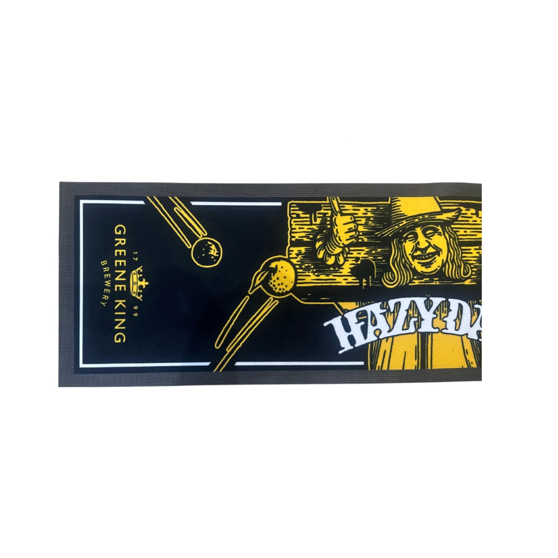 The Green King Hazy Day Rubber Bar Runner is a collectable breweriana item perfect for beer enthusiasts. This 88cm x 24cm bar mat features the popular Hazy Day design from Green King, making it a stylish addition to any home bar or man cave. Made from durable rubber, this bar towel is ideal for placing drinks on during gatherings or for display as a unique piece of breweriana memorabilia. Perfect for fans of ale and bitter, this bar mat is a must-have for any beer lover's collection.