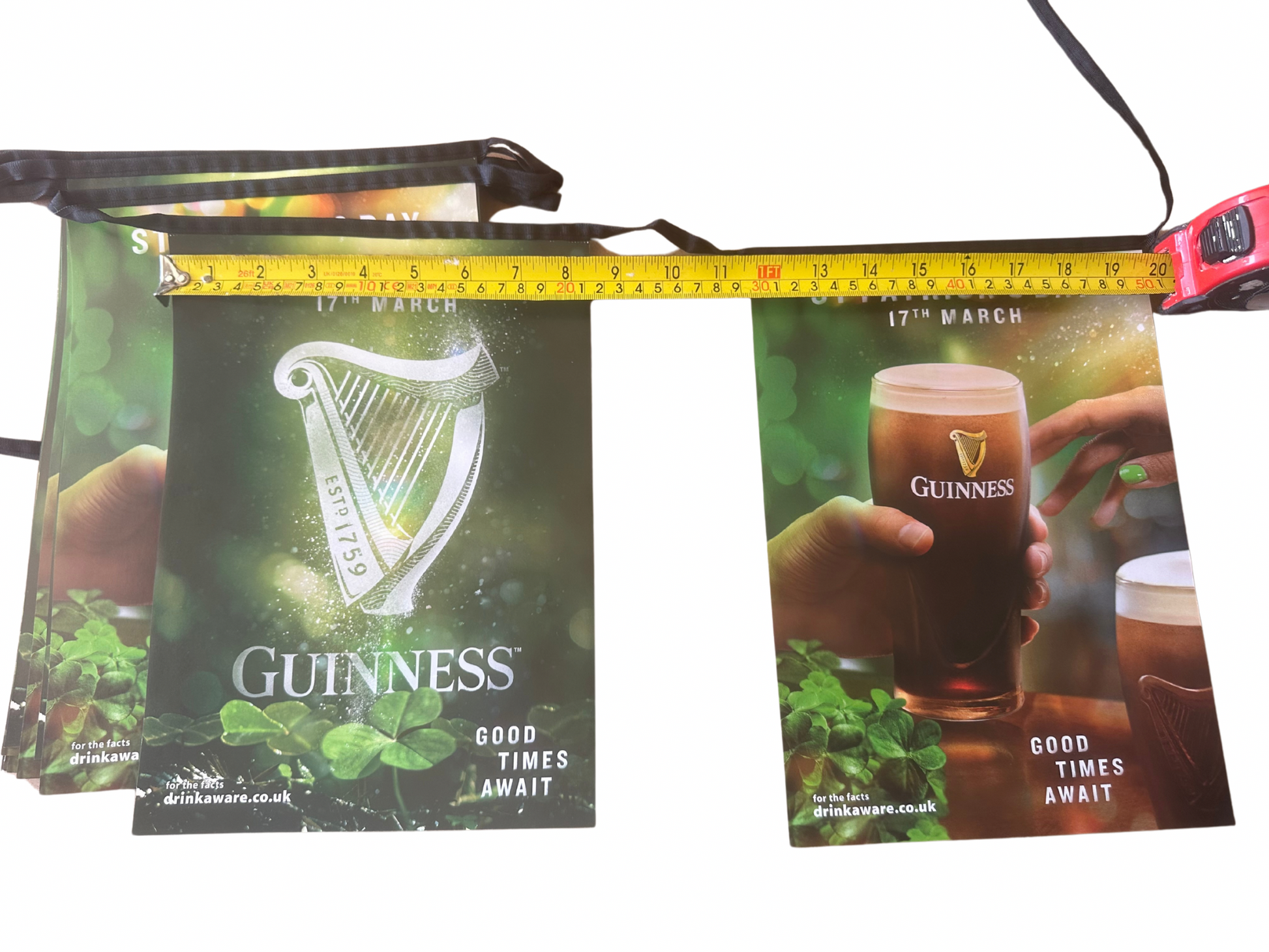Crafted from high-quality materials, this bunting is designed to last and withstand the test of time. With its vibrant colours and durable construction, it's sure to enhance the look and feel of any space. So why wait? Order your Guinness bunting today and take your barware to the next level!