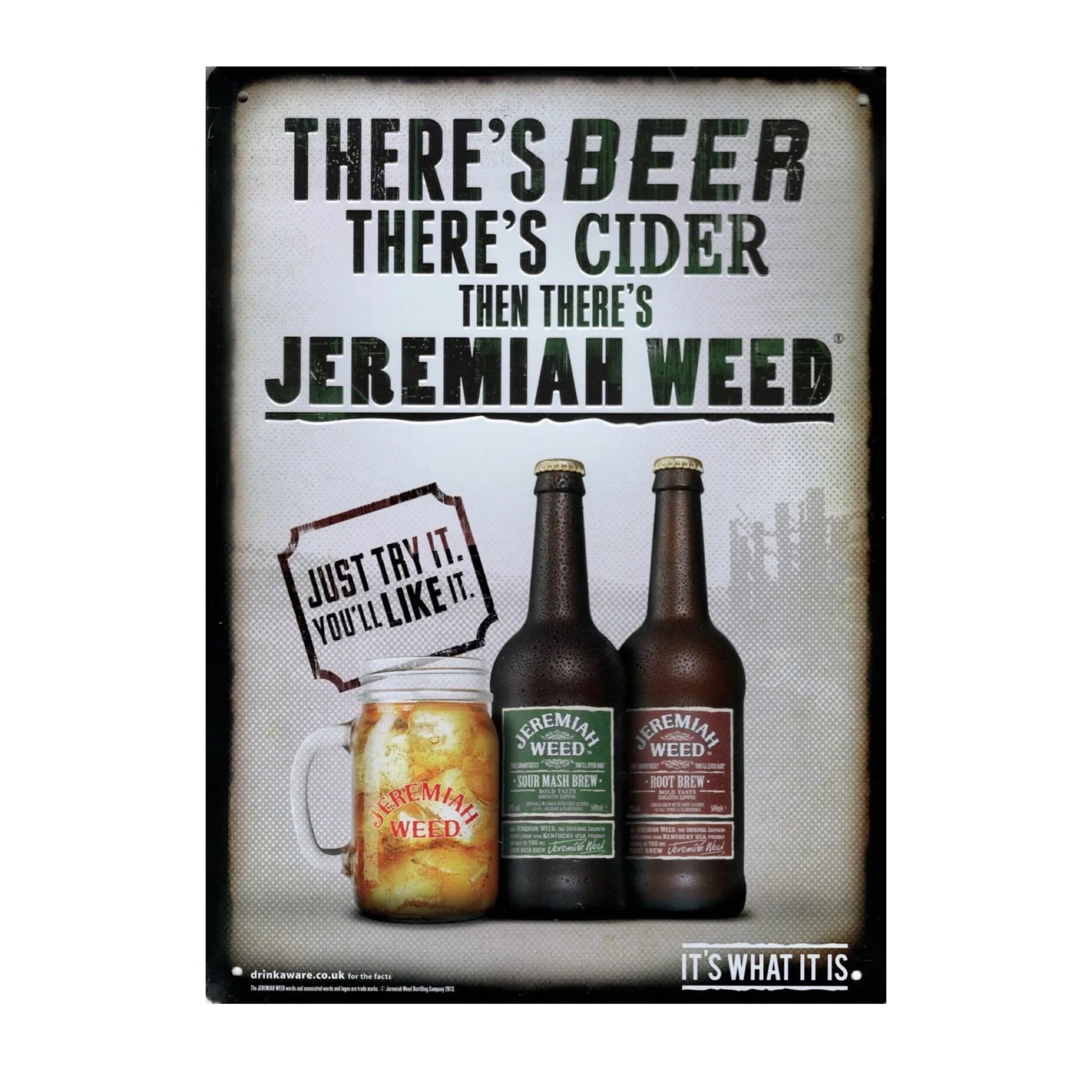 Jeremiah Weed Embossed Metal Bar Sign (A4 - 22x30cm)
