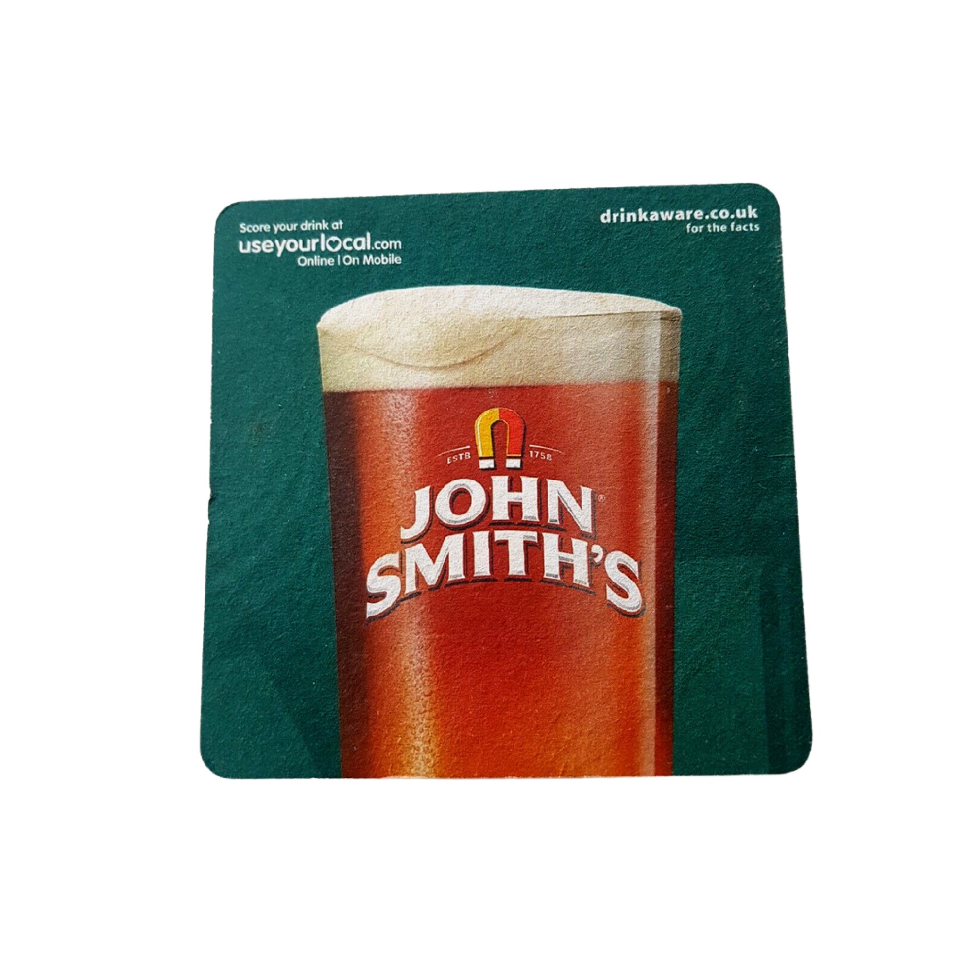 - AUTHENTIC BRANDING: Official John Smith's merchandise with distinctive red and white logo on green-backed coasters