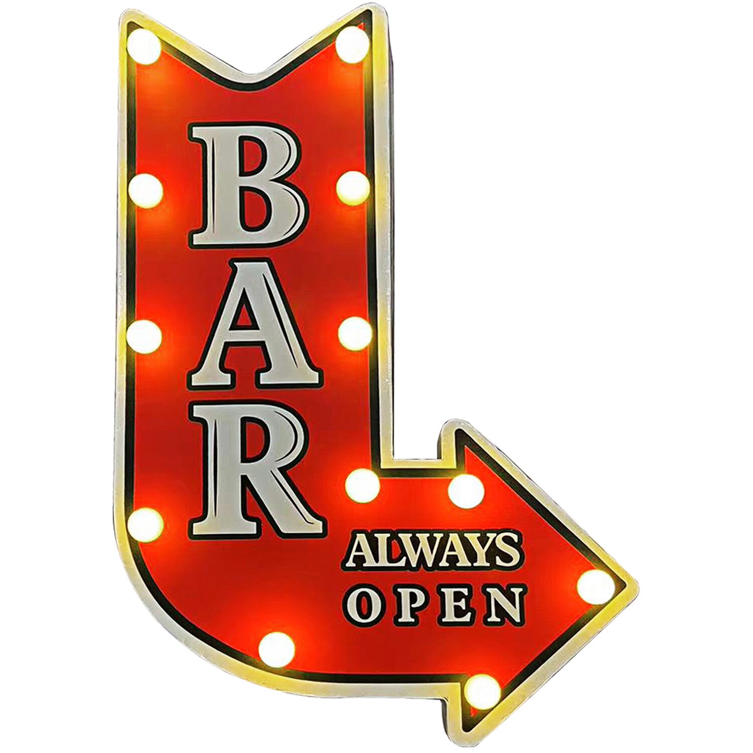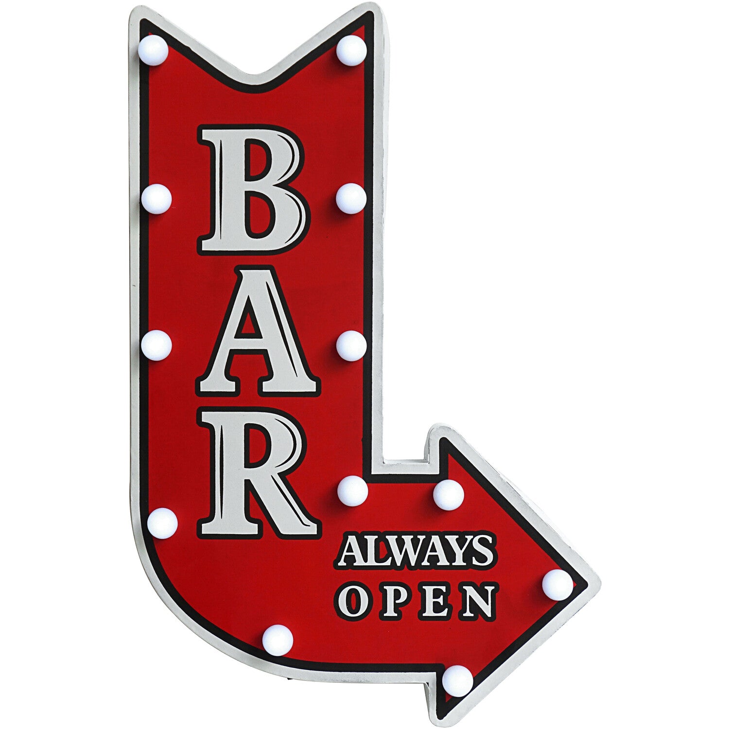 The LED Bar Always Open Sign is a brilliant addition to your home bar. This charming sign has a traditional arrow design pointing the way to your bar and is printed with 'bar always open' lettering. Finished with a selection of LED bulbs to light up your sign for that classic feel, it's a great addition to your indoor bar space.