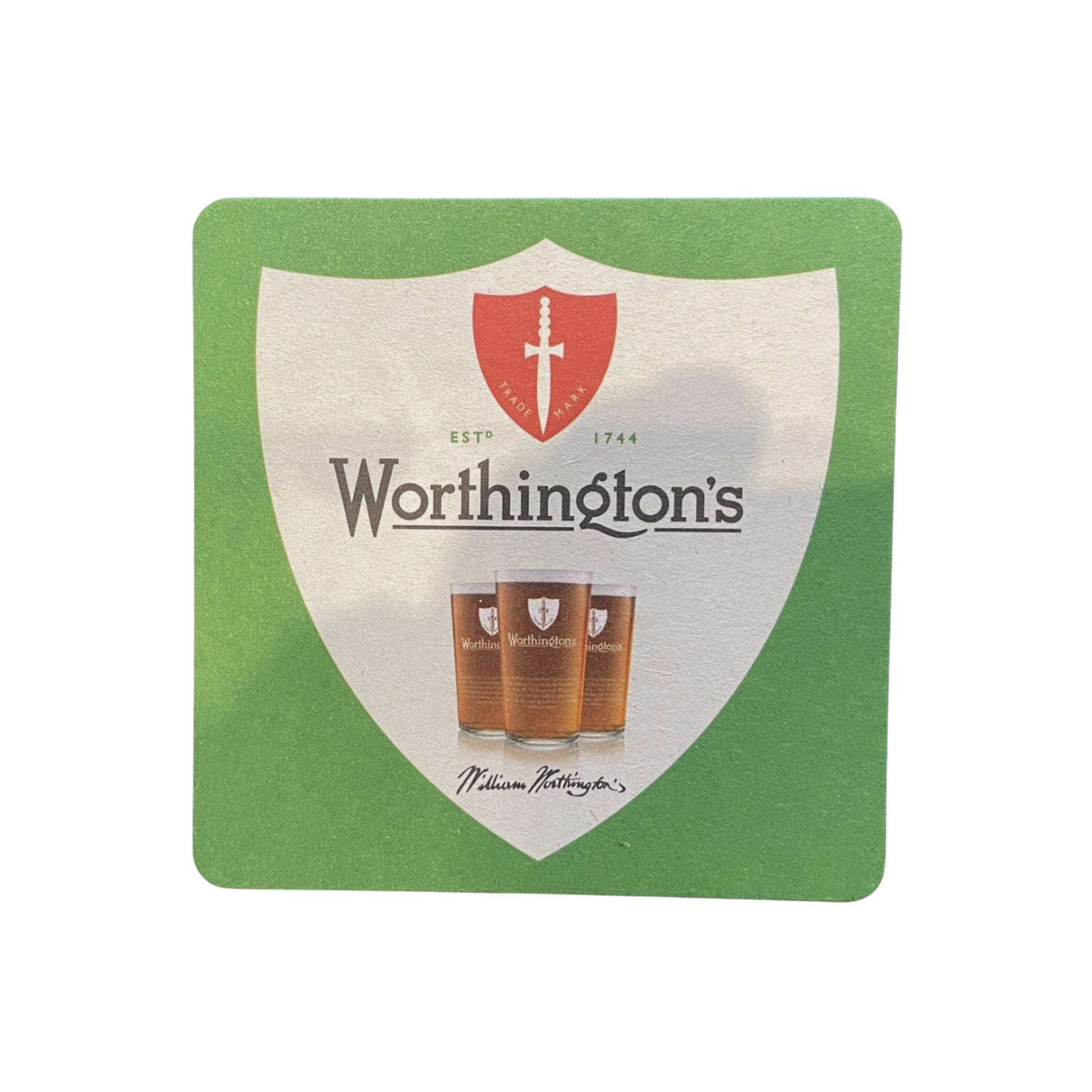 - COMPLETE SET: Includes 4 premium Worthington's pint glasses and 10 matching pub-style coasters featuring the iconic Worthington's shield design