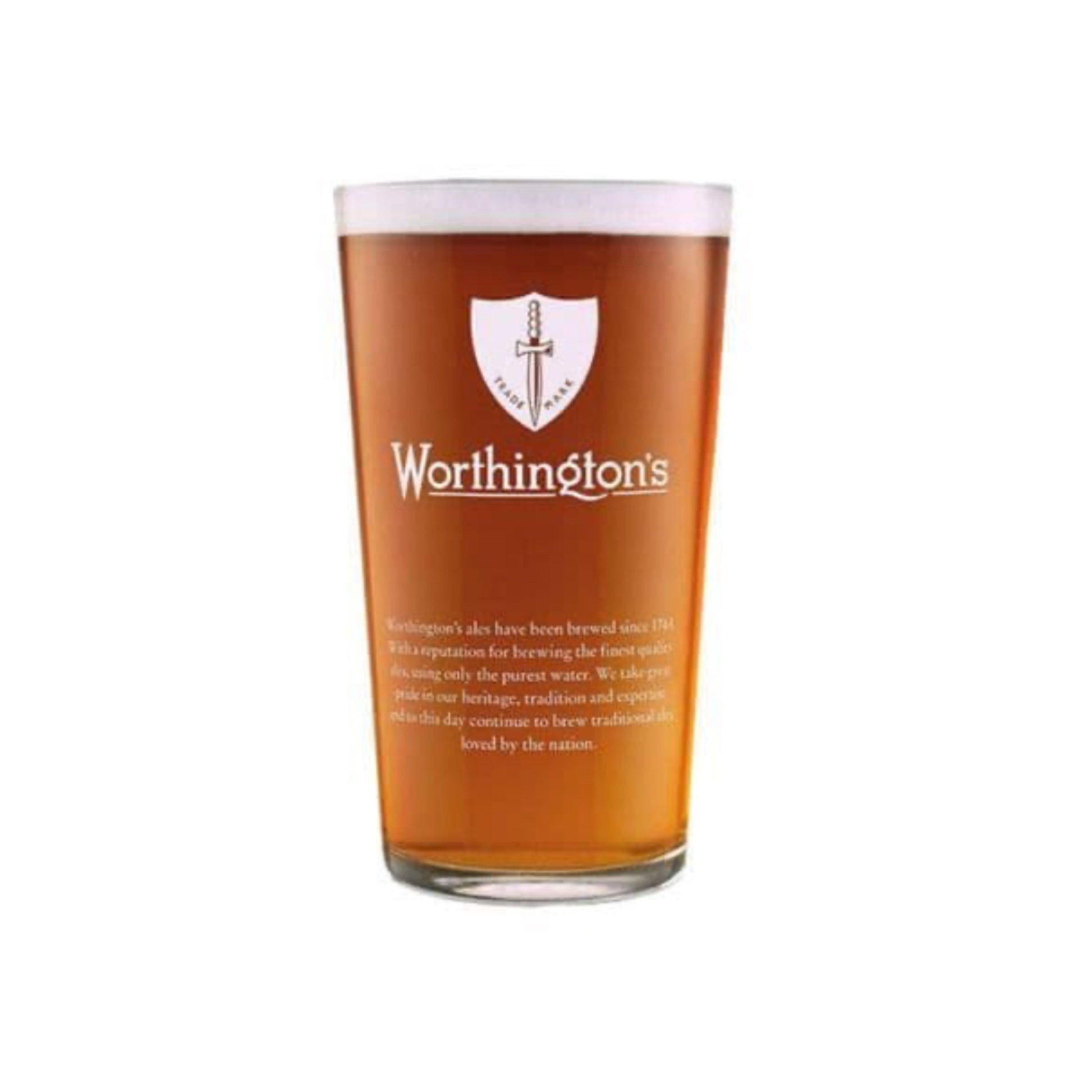 - AUTHENTIC DESIGN: Classic pint glasses with the Worthington's shield logo and traditional text etching, perfect for serving draught beer